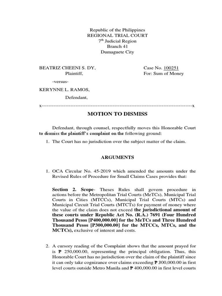 A motion to dismissis filed when the party feels as though a lawsuit is not warranted or appropriate given the situation. The defendant, gloria dela cruz, filed a motion to dismiss the. Find a variety of motion to dismiss forms for different states and situations. Defendants’ memorandum in support of their motion to dismiss introduction. This blog post will guide.